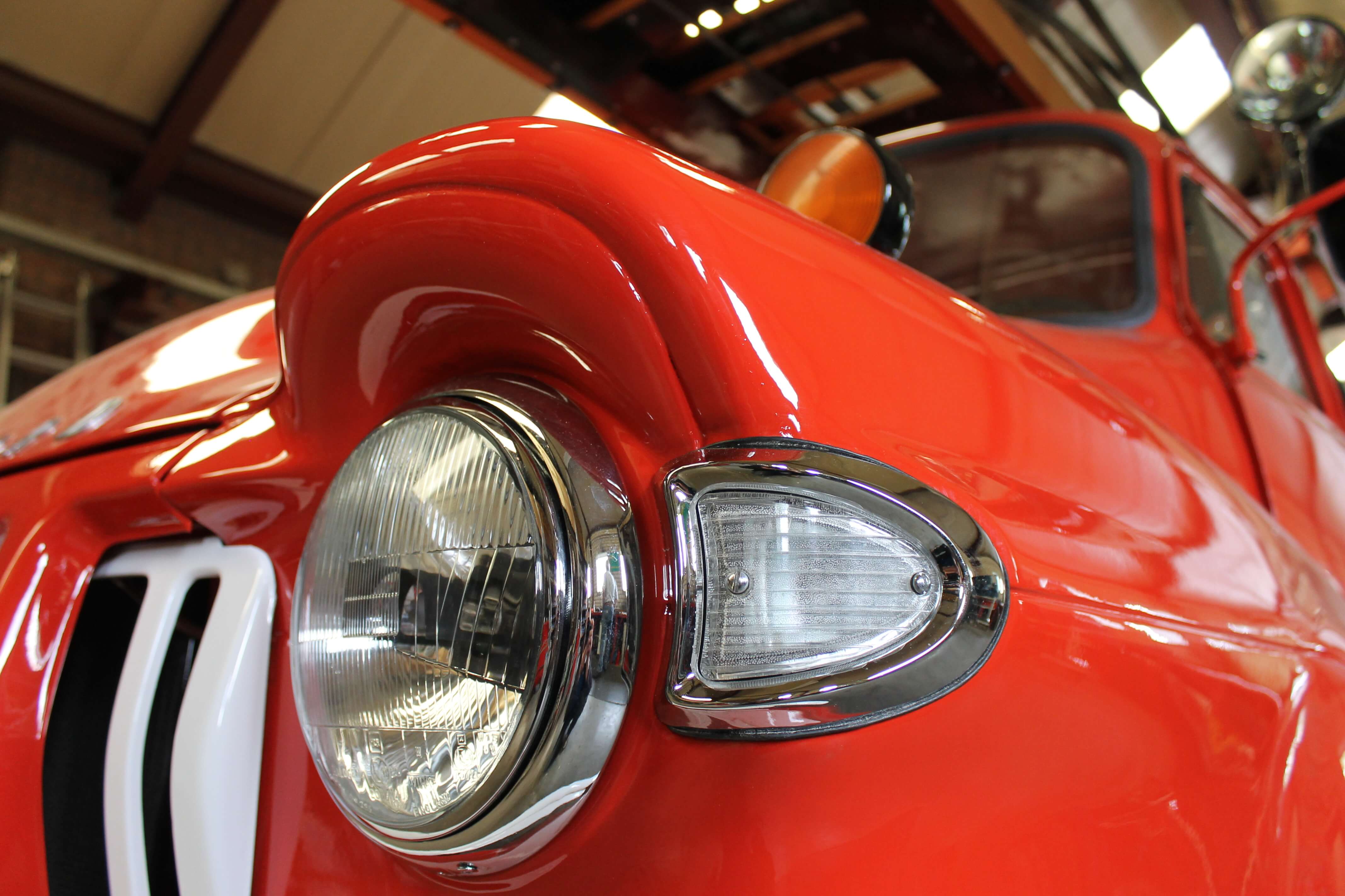 zo-werd-de-bedford-ladderwagen-aagetroffenVanaf het moment dat de Bedford zijn status als donorauto had ingewisseld voor dat van restauratieobject duurde het zo’n tweeënhalf jaar voordat de auto was gebracht naar zijn huidige staat. Veel gegevens over de oorspronkelijke staat had Jan niet voorhanden. De brandweerkorpsen bleken niet erg scheutig met hun informatie en de enkele foto die hij bezat, moest als basis dienen voor het hele project. Dat heeft hier en daar ook tot concessies geleid. Zo bekleedde Jan de achterkant met aluminium traanplaat, terwijl hij nu denkt dat er ooit van zink gebruik gemaakt werd. Het chassis bleek bij aanvang nog keihard. Hooguit wat oppervlakteroest dat na stralen en spuiten geen belemmering meer opleverde. De spatborden waren bij aankoop niet meer aanwezig. Via via kon Jan ze nog wel achterhalen, maar de vraagprijs was torenhoog. Daarom bracht een donor uitkomst.