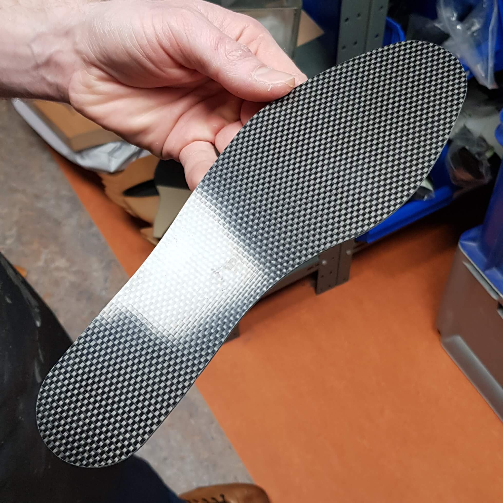 Misschien verklaart het ook mijn autoliefhebberij, maar ik vind de techniek en constructies achter voorwerpen ontzettend interessant. Helemaal als het dit soort handwerk én vakwerk betreft. Een aangeboden rondleiding in de werkplaats van Schonagen door een van de schoentechnici liet ik me dan ook geen twee keer zeggen. De schoentechnicus loodste me door de verschillende productiestadia heen waarin iedere medewerker wel zijn specialisme heeft. Hij liet me tevens zien hoe zo’n zoolverstijving er bijvoorbeeld uit ziet en van wat voor soort materialen en diktes ze mijn enkelkokers konden maken. Voor verschillende voetproblemen liet hij wat voorzieningen zien om bijvoorbeeld ook de voetstand te corrigeren. Terecht trots op zijn werk toonde hij vervolgens mijn proefschoenen. Bedankt Hilde dat je die rondleiding regelde, voor je geduld bij alle benodigde aanpassingen en dat ik de proefschoenen mocht houden, zodat ik ook tot de oplevering van de definitieve schoenen veel comfortabeler in en om mijn huis kon blijven lopen!
